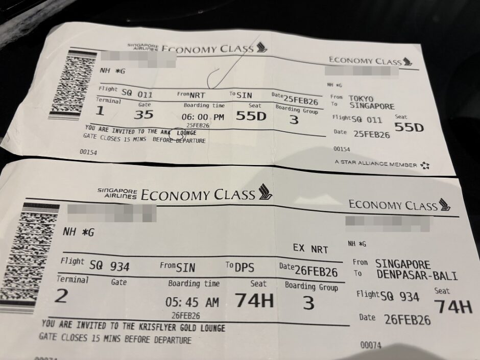 そこでシンガポール航空(成田→チャンギ乗り継ぎ→バリ島)が候補に上がりました。