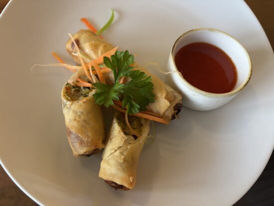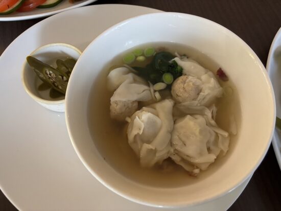 注文した4品はミーゴレン・ワンタンスープ・サテ盛り合わせ・揚げ春巻き。