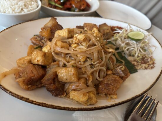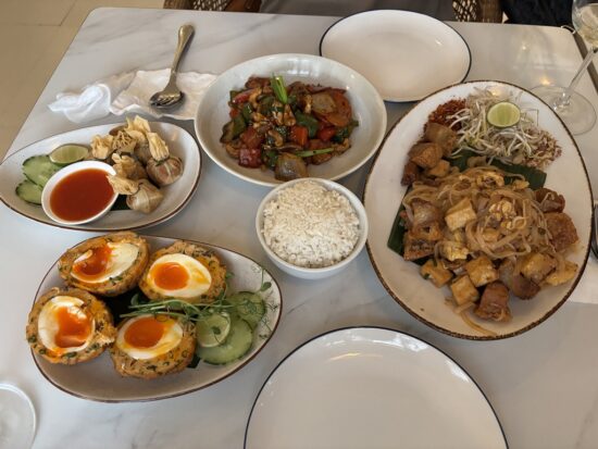 注文したのはパッタイ(ポークベリー)・カシューナッツ炒め・タイフィッシュケーキ・ゴールデンバッグの4品。