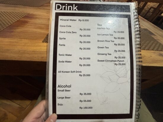 バリ島全体の傾向ですが、お酒の値段はお料理と同じくらいかかると思っておいた方がよさそうです。
