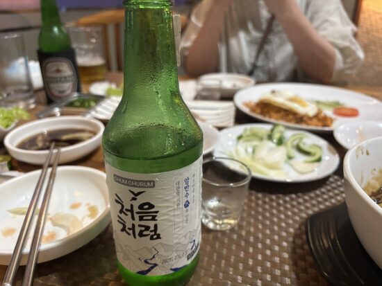 注文したのはジャジャンメン・キムチチャーハン・スユク(茹で豚)・焼酎(처음처럼)。