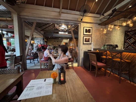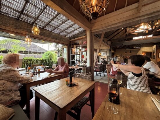 バリ風の素朴でおしゃれな内装で、PM5時半くらいにもかかわらず外国人観光客がすでに食事をしており、帰る頃にはほぼ満席状態でした。