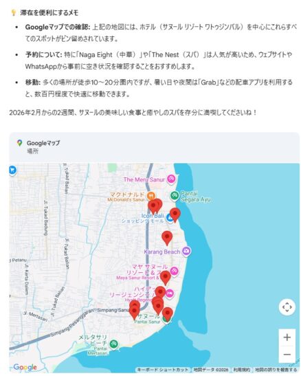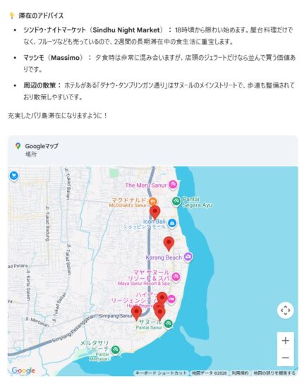 今回のバリ島サヌール滞在が充実していた理由のひとつが、出発前にAIを使って徹底的に事前プランニングをしていたことです。