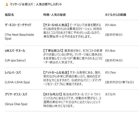 「バリ島旅行、どこで食べよう?どこでマッサージしよう?」