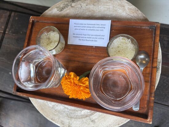 施術後には自家製のライム・レモン・ミントソルベとお水のサービスあり。細やかなおもてなしが印象的でした。