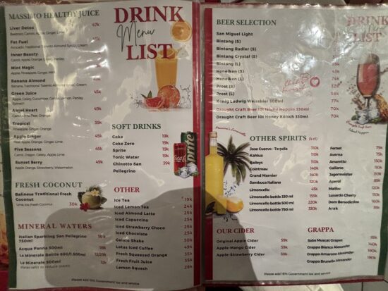 マッシモの料理は本当に美味しく、サヌールに来たなら一度は訪れる価値があります。