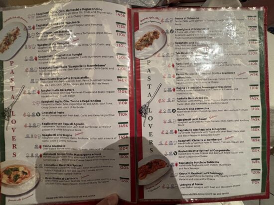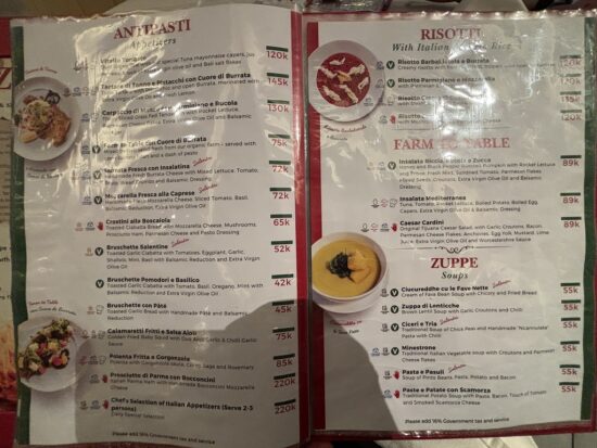 サンミゲルライトで乾杯しながらメニューを眺めるひとときは、いかにも本格イタリアンレストランといった雰囲気でした。