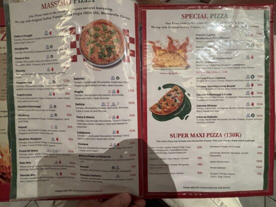 種類は定番のマルゲリータからグルメな「ビアンカ・ペスト・エ・ピスタッキオ(Rp130,000)」まで20種類以上揃っています。