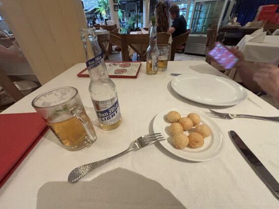 着席するとサービスで小さなチーズボールのようなお通しが登場。