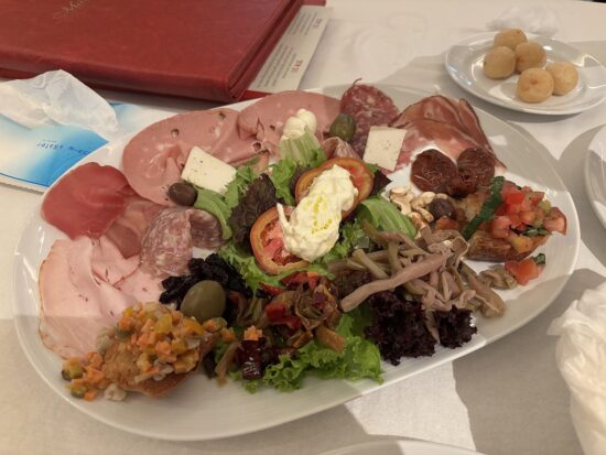 前菜の「シェフ・セレクション(Rp220,000)」は2〜3人前のボリュームで、その日のおすすめイタリアン前菜が盛り合わせで登場する名物メニューです。
