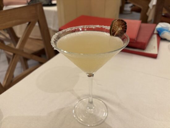 ドライライムのスライスが添えられた見た目もおしゃれで、イタリアンの夜にぴったりの一杯でした。