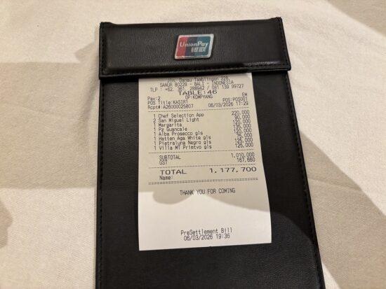 お会計|GST込みRp1,177,700(約11,414円)