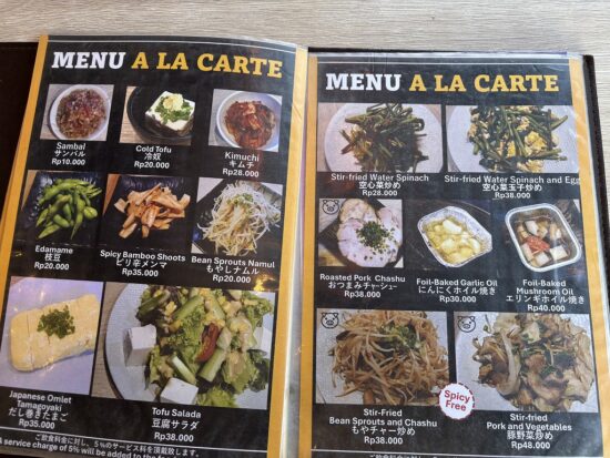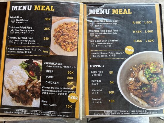 さらにラーメン(Rp48,000〜)・焼肉丼(Rp45,000〜)・ハイボールなど日本人好みのメニューも豊富です。