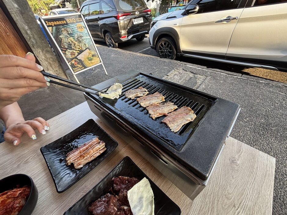 自分でグリルで焼いていただくスタイル。日本の焼肉屋さんとまったく変わらない雰囲気で、バリ島にいることを一瞬忘れてしまうほどです。