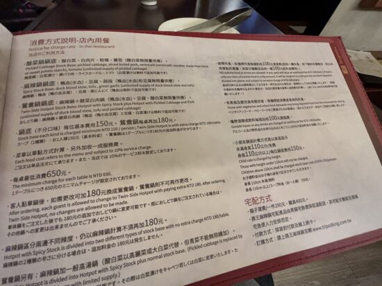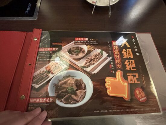 鼎王麻辣鍋のメニュー