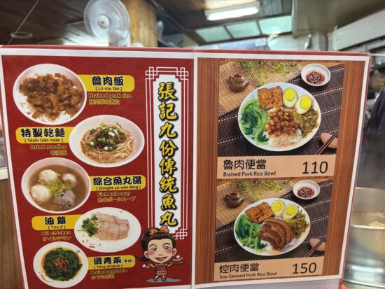 エビ団子で勢いをつけて九分の活気ある路地を歩いていると、ひときわ目を引くこの看板に出会いました。