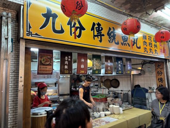 九分を歩く多くの観光客が目にする、歴史的な建物のお店です。