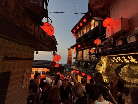 ランタンが灯り始めると観光客はさらに増えましたが、ランタンの灯りの下では、その喧騒すらも九分という街の活気として心地よく感じられました。