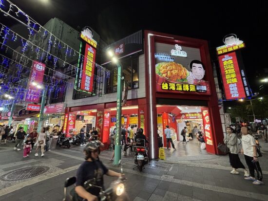 そして天天利美食坊にいく通りすがりにみつけた西門町の交差点でひときわ目立つ赤い外観の有名店「師大夜市 台湾塩酥鶏(台湾塩酥鶏)」。
