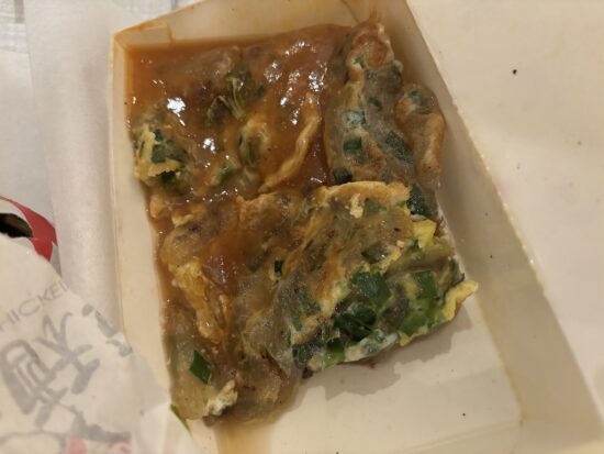 テイクアウトしたのは天天利美食坊名物ぷるぷるの「蚵仔煎(かきおこ/牡蠣オムレツ)」。