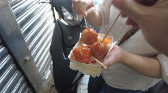 食べ歩きも九份の楽しみ、屋台をハシゴし九份傳統魚丸へ